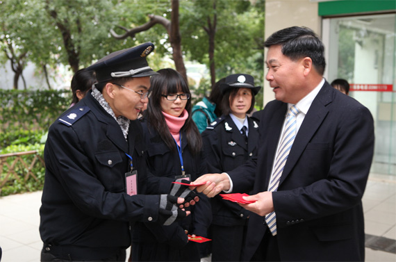 玉兔欢颜辞旧岁,祥龙献瑞迎新春。1月23日,正值龙年大年初一,校领导周致纳、杨晓西等冒着寒风细雨,亲切慰问了坚守岗位的保卫、后勤人员,学生联防队员和部分留校过年的学生,感谢大家为学校发展作出的贡献,并向大家送上新春的祝福,衷心祝愿大家在新的一年里,身体健康,万事如意!