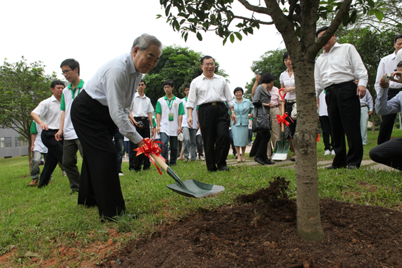 4月27日上午,春风和煦,阳光明媚,诺贝尔物理学奖获得者、我校名誉校长杨振宁,著名学者、书画家、诗人范曾大师在学校领导周致纳、杨晓西、黄碧莲、吕琦元、戴炳源等的陪同下,来到我校院士林,为莞工校园再添新绿。