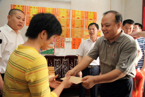 5月4日,校扶贫帮困“双到”小组组长、党委副书记吕琦元,东莞市第十三次党代会代表、副校长李忠红率员到我校对口帮扶的东莞市企石镇铁炉坑村慰问。