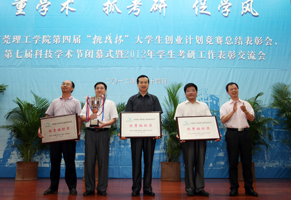 化学与环境工程学院、电子工程学院、文学院和机械工程学院被评为“2012年考研工作先进单位”,35名考上研究生的学生被评为“2012年应届毕业生考研优秀学生”。