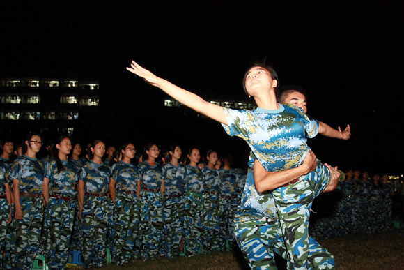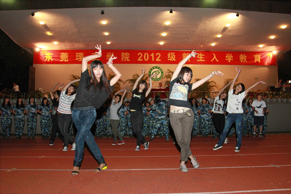 9月17日,我校在莞城校区举行了2012级新生军训歌咏比赛,本次比赛以清唱为主,同时辅以舞蹈,全体军训新生和教官共同参与。