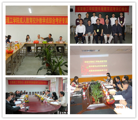 11月13日至21日,成教学院对12个校外教学点进行考评。考评专家分成两个组:第一组由考评专家小组组长、成教学院院长段雄春研究员带队,先后考评了常平、东坑、茶山、石龙、塘厦、樟木头等六个校外教学点;第二组由考评专家小组组长、成教学院党总支书记程克江副教授带队,先后考评了虎门、厚街、长安、大岭山、麻涌、望牛敦等六个校外教学点。专家组成员认真听取了各教学点负责人的自评汇报,仔细查阅了有关档案材料,实地考察了教学点教学设施及办学条件,召开了相关工作人员座谈交流会。