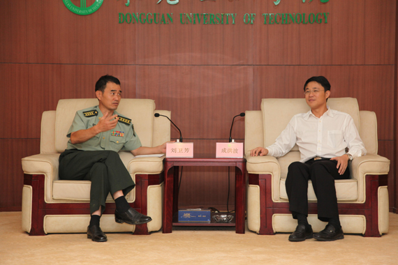 东莞军分区司令员李庆文、我校副校长戴炳源等参加了座谈。
