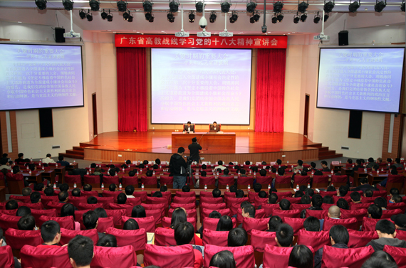 12月18日下午,广东省高教战线学习党的十八大精神宣讲会在我校举行。省高教战线学习党的十八大精神宣讲团成员、广东工业大学政法学院院长谢迪斌教授作了题为“关键时期的重要大会”的宣讲报告。