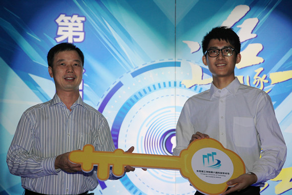 副校长李忠红和学生代表、校学生会主席卢校淇共同用“金钥匙”开启了科技之门,标志着我校第八届科技学术节正式启动。