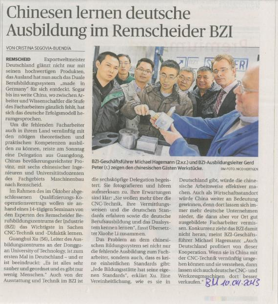 4月6日至4月21日,根据“中德精密制造技术中心”的项目安排,应德国工商会公共实训中心(BZI)的邀请,我校派出许光辉、邓君、王磊杰、李荣泳、黄泳波5位教师赴德国参加数控教师训练班。