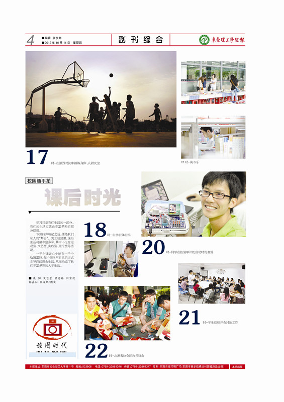 据悉,为进一步办好校报,增强版面的可观性,校报从今年5月31日起进行了改版,版面从原来的4开4版改为对开4版。改版后的校报将新增“教坛新经”、“校园情报站”、“文化广场”、“成长心语”、“话题讨论-生活圆桌”以及“时事评论-莞工睇世界”等多个栏目,力图使内容更加贴近师生、贴近生活、贴近实际,让读者通过校报更好地了解和认识独具莞工特色的校园文化。(涂斯岚/文)