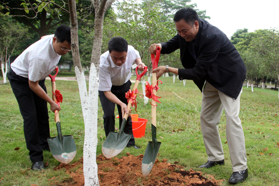 随后,在校领导成洪波、李琳、安少华的陪同下,张尧学院士还在我校院士林植下一株丹桂苗。
