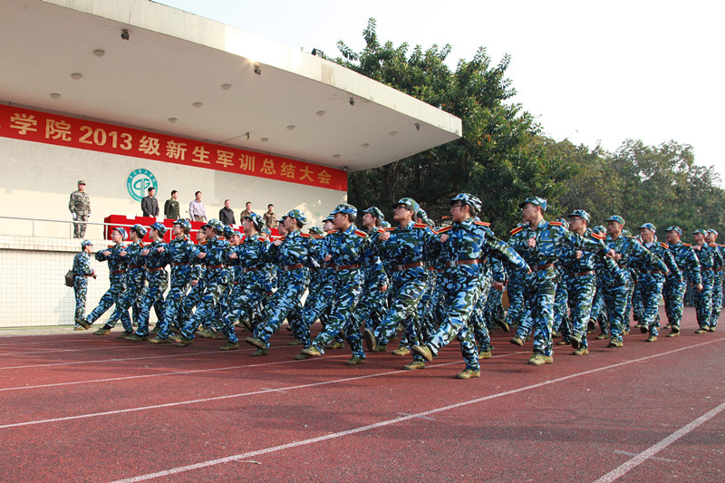 随后,各个方阵依次排着整齐的队伍、迈着矫健的步伐,士气高昂地通过主席台,接受领导的检阅。各连口号响亮,行进有力,队列齐整,充分展现了2013级学生良好的精神风貌和训练效果。