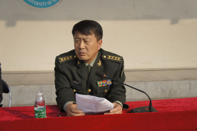 1月10日,我校邀请东莞军分区司令员李庆文来校给2013级同学作国防教育报告。副校长戴炳源副校长主持报告会。