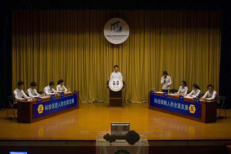 开幕式后,学校学生辩论队为同学们带来了一场友谊辩论赛,科技学术节增光添彩。(张钢、廖莎、张伟财/文 叶梓炜/图)