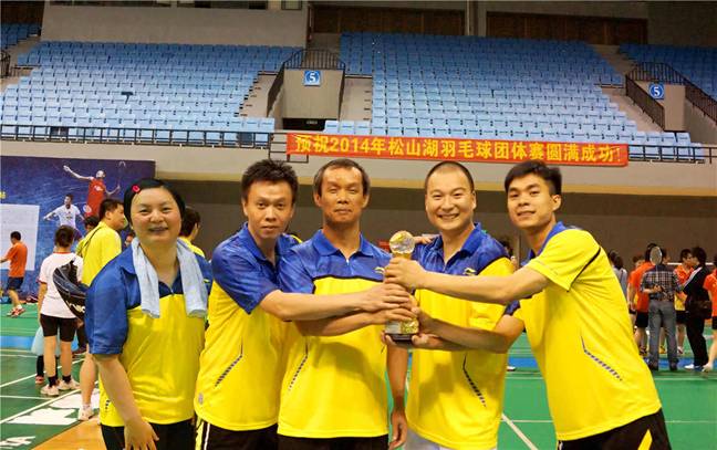 5月5日至9日, 2014年松山湖羽毛球团体赛在我校体育馆举行。本次比赛分机关组和企业组两个组别进行, 来自松山湖高新区各企事业单位的28支代表队近300名选手参加了男子双打、女子双打、混合双打各项比赛。经过前几轮的激烈角逐,我校教工羽毛球队一马当先,率先进入决赛,对决广东医学院羽毛球队。最后,我校教工羽毛球队以绝对优势,赢得机关组冠军,实现了三连冠。赛后,我校教工羽毛球队还与企业组冠军进行了友谊赛,并以2:0比分取得了胜利。
