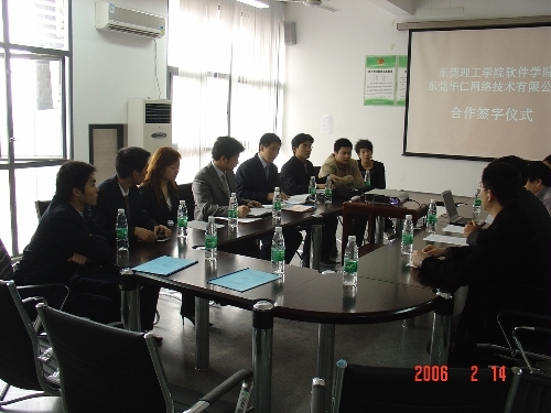 2月14日,我院软件学院与东莞华仁网络技术有限公司举行合作签字仪式。根据双方合作协议,今后华仁网络有限公司将为软件学院应届毕业生提供实习和就业机会;软件学院也将为华仁网络有限公司在技术、员工培训、产品开发和研究方面提供帮助。双方表示,要不断健全合作机制,拓展合作领域。