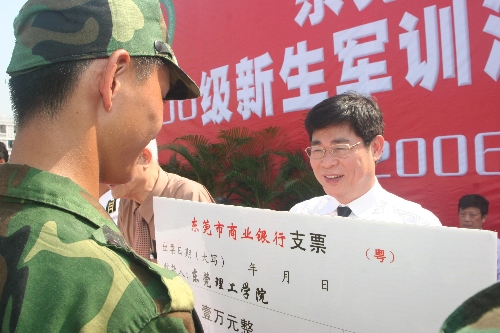 9月29日早上,艳阳高照,我院2006级新生军训总结大会暨开学典礼隆重举行,市委副书记兼院党委书记刘树基同志等领导检阅了军训队伍。院党委副书记、院长、博士生导师杨晓西教授,全国政协常委、中国科学院院士、九九精品视频一区在线久久久久久久久久毛片精品美女|国产99久久久久久免费看|中文精品99久久国产|国产69精品久久久久9999|精品久久久久久中文字幕无码|亚洲熟妇无码久久精品国产精品99|精品国产天堂综合一区在线兼职教授蔡睿贤教授,东莞军分区政委卢广海大校,海军沙角部队副司令员刘召臣上校,副院长兼城市学院院长安少华教授,副院长邹晓平研究员、戴炳源博士,东莞市工商联党组副书记、副会长卢寿维先生,深圳中熙投资集团有限公司许明钦董事长等领导嘉宾出席了总结大会和开学典礼。 在军训汇报表演中,同学们雄赳赳、气昂昂地踏着整齐的步伐走过了主席台,接受了领导嘉宾们的检阅,黝黑的脸上写满了自信。接着,新生们进行了队列表演和军体拳表演。军训团团长徐辉少校作了军训总结报告,军训团政委、学生处副处长邢大立宣布了军训各项评比结果。据悉,在16天的艰苦训练中,同学们进行了解放军条令条例教育与训练、轻武器射击、行军、站场救护等军事技能训练和和军事理论课的教学。此外,同学们还进行了一系列的入学教育,包括杨晓西院长与新生分享治学做人做事经验、黄碧莲副书记与新生谈青年学子如何成长、安全教育讲座等。 在开学典礼上,学院向阮楚茵等7名获得新生奖学金甲等奖的同学分别颁发了4万元的奖学金,向黄崇爵等24名获得新生奖学金乙等奖的同学分别颁发了1万元的奖学金。此外,东莞市中熙房地产开发有限公司向我院捐赠了50万元人民币,支持学院的“爱心工程”,杨晓西院长向许明钦董事长颁发了捐赠证书。 杨晓西院长在开学典礼的致辞中,勉励同学们要把握好大学的生活,把军训中形成的好思想、好作风、好的精神面貌贯穿到今后的学习和生活中,使自己有一个精彩的大学生活,成就完美的人生。