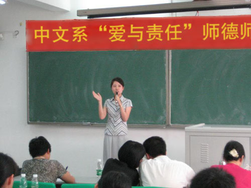 为积极响应学院号召,深入开展师德师风系列活动,以良好的精神风貌迎接教学水平评估。5月25日下午,中文系在7B315举行了以“爱与责任”为主题的师德师风演讲比赛,系全体教师和近200名学生观看了比赛。