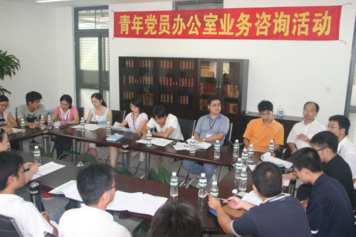 6月28日、29日,根据机关党总支开展“机关作风建设”主题党日活动的安排,机关一支部(学院办公室、党委办公室)分别与教学、教辅、后勤和机关各部门从事办公室工作的青年党员进行咨询活动,收到了良好的效果。