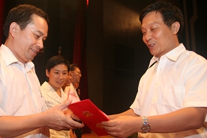 秋菊溢彩,丹桂飘香。9月12日下午,学院领导周致纳、杨晓西、王江水、黄碧莲、安少华、邹晓平、戴炳源及全院教职工共聚大礼堂隆重庆祝我国第23个教师节。院长杨晓西教授主持了大会。大会对获得学院“教学名师奖”、“师德标兵”称号、2006—2007年度教学质量优秀奖及2006—2007学年度教书(管理、服务)育人的先进个人进行了表彰,学院领导分别为他们颁发了荣誉证书和奖品、奖金。其中,“教学名师奖”和“师德标兵”是我院建院以来首次组织的评选。“教学名师奖”一次性奖励人民币10000元,每两年学院组织一次评选,每次获奖名额不超过5人;“师德标兵”是经基层民主推荐,全院师生投票等相关程序产生。