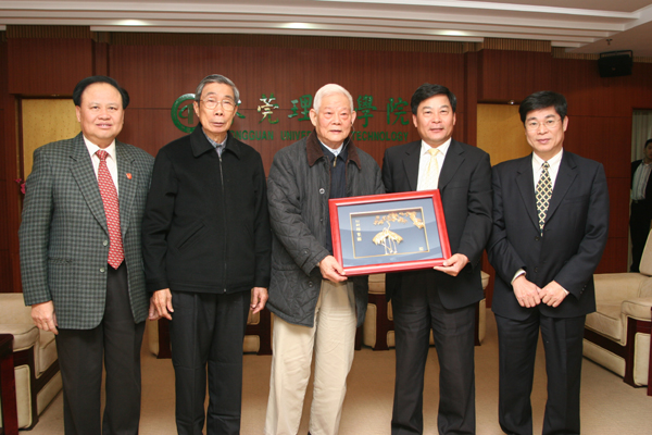 叶选平同志在听取了党委书记周致纳的简要汇报后,关切询问学院未来的发展远景。当得知我院正不断提高办学质量、朝名牌地方院校战略目标而努力奋斗时,叶选平同志连声说好。