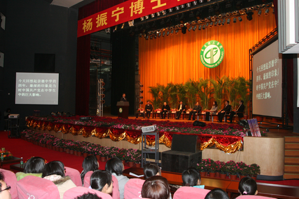 2月26日4时30分,在学院大礼堂,随着配有时间提示的文字和一张张珍贵照片的展示,杨振宁博士以《我的生平》为题与我院师生一道分享他的人生风采。
