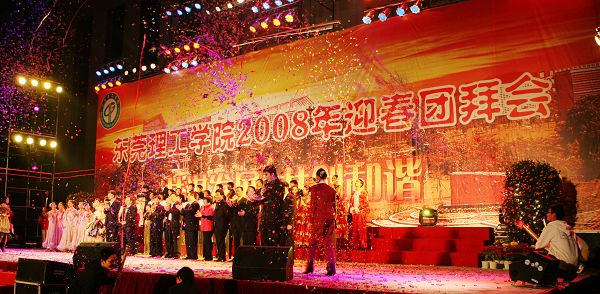 院长杨晓西在团拜会上致辞,他回顾了学院在2007年所取得的成绩,指出2008年是迎接教育部专家组的评估和检验之年,希望全院师生员工紧握迎评契机,推动学院科学发展,进一步完善机制,加强管理,提高教育教学质量,齐心协力打好教育部本科教学工作水平评估这场仗,在建设有创新特色的名牌地方院校的蓝图上,添上浓墨重彩的一笔。