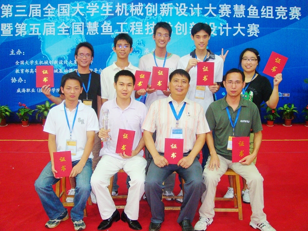 我校于2008年9月4日至9月8日,参加了在山东省威海市举办的第三届全国大学生机械创新设计大赛慧鱼组竞赛暨第五届全国慧鱼工程技术创新设计大赛。本次大赛是由全国大学生机械创新设计大赛组委会、教育部机械基础课程教学指导委员会主办。