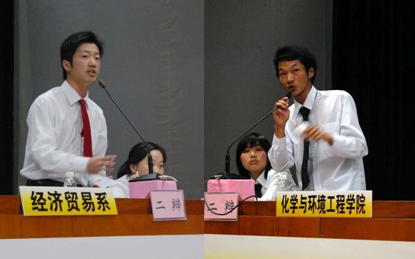 昨天,第二届“莞工青年杯”学生辩论赛复赛战火点燃,8支院(系)代表队围绕“抵制外国产品对民族企业利大还是弊大”的辩题展开了4场激烈的唇枪舌战。工商管理学院、经济贸易系、政法学院和外语系代表队各自战胜对手,闯进四强。 据了解,此次辩论赛的半决赛将结合我校“廉政文化进校园”系列活动来开展,4支代表队将围绕“反腐倡廉自律与他律哪个更重要”进行辩论,胜者将进入总决赛。