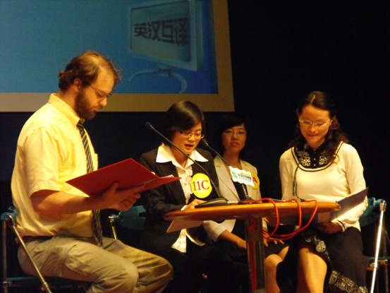 李航同学流畅准确地完成英译汉环节,袁健同学也镇定地闯过汉译英环节,马海华同学则进行最后精彩的汉英互译环节。三位选手自信大方,赛出了自己的水平,他们精彩的表现赢得现场阵阵掌声。
