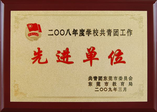 近日,共青团东莞市委、东莞市教育局召开了2009年学校团队工作会议,大会表彰了一批学校共青团的先进集体和优秀个人。我校团委被评为“2008年度东莞市学校共青团工作先进单位”,植旭明同志被评为“2008年度东莞市学校共青团工作先进个人”。