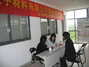 为了解决大学生就业难的问题,帮助大学生尽快找到合适的工作单位,经贸系党总支特意邀请东莞市硕源电子材料有限公司来我校举行招聘会。2009年3月25日,由经济贸易系主办的“东莞市硕源电子材料有限公司现场招聘会”在经管楼三楼举行。经贸系党总支副书记杨万江副教授,辅导员王明波老师都亲临招聘现场,为招聘活动做现场指导。