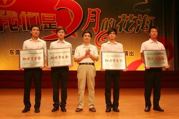 当晚,还对2008—2009学年“红旗团总支”获奖单位、“红旗学生会”获奖单位、“先进志愿服务站”获奖单位、主题团日活动“优秀组织奖”获奖单位、“十佳团日活动”获奖单位、“红旗团支部”获奖单位、“先进团支部”获奖单位以及“优秀团干部”、“优秀学生会干部”、“优秀团员”、 “志愿服务工作先进个人”、“优秀志愿者”等先进集体和个人进行了表彰。