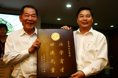 广东鸿发集团投资有限公司向我校赠送纪念品。