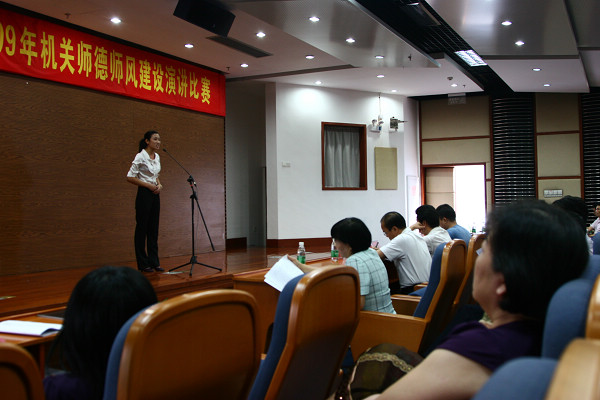 10月28日,机关党总支在学术交流中心举行2009年师德师风演讲比赛。校领导王江水、黄碧莲与全体机关工作人员观看了比赛。