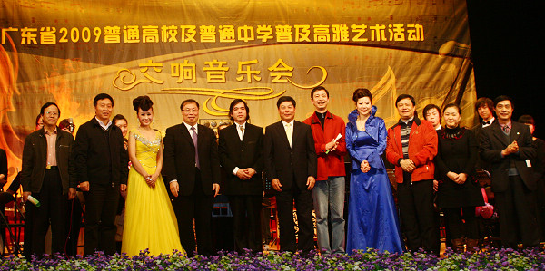 2009年12月31日晚,“广东省2009高雅艺术进校园活动——广州星海音乐学院民族乐团交响音乐会”在我校大礼堂成功举行。学校领导周致纳、杨晓西、王江水、安少华、邹晓平、戴炳源和1000余名师生一同在聆听交响音乐,感受高雅艺术的魅力中迎接2010年。
