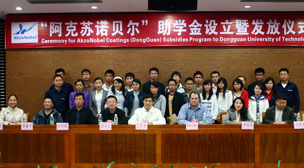 王江水在致词中向阿克苏诺贝尔涂料(东莞)有限公司对我校贫困学子的关爱表示感谢,并寄语受助的学生要怀感恩之心,自立自强,努力学习。欧瑞恩先生则以风趣幽默的语言对阿克苏诺贝尔涂料(东莞)有限公司进行了介绍,并鼓励莞工学子发奋读书,在逆境中成才,回报社会。