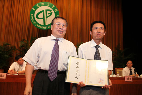 在5月14—15日召开的学科建设和科研工作会议上,学校对电子科学与技术学科的杨雷、化学工程与技术学科的范洪波、机械工程学科的孙振忠、计算机科学与技术学科的袁华强、中国语言文学学科的田根胜等5名第一批学科带头人颁发聘书,并举行《学科建设目标责任书》签订仪式。 在学校领导周致纳、王江水、黄碧莲、安少华、邹晓平、戴炳源,东莞市科技局局长何跃沛,东莞市社科联主席王思煜和600多名教职工的见证下,杨晓西校长向学科带头人颁发聘书,并逐一与他们签订《学科建设目标责任书》。 这5名学科带头人聘期为三年,从2010年5月起至2013年4月止。聘期内将完成《学科建设目标责任书》相关任务。 杨雷教授和范洪波教授分别代表学科带头人发言,表明了所带学科的努力方向和措施。