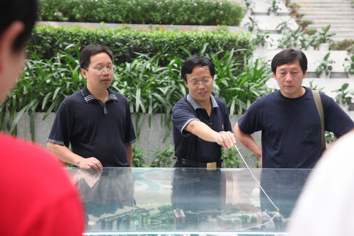 我校副校长邹晓平等与客人座谈。宾主就学科规划建设、校园文化建设等交流了工作经验。