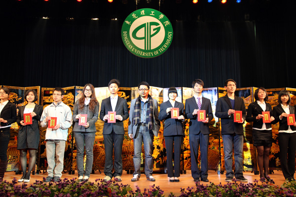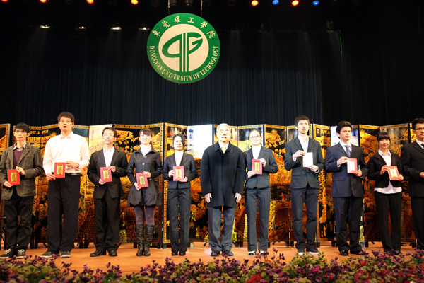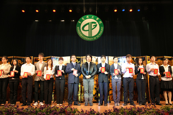 近年来,我校办学得到社会各界的大力支持,在当晚的颁奖的各类奖学金中,最引人注目的是“杨振宁奖学金”,本学年度共有6个团队获得该项奖学金,他们都是在全国各种科技竞赛中获得优异成绩的学生团队。另外,还有10家企业分别设立的奖学金,奖金总额达427500元。其中个人获得奖金最高的是由广东光大企业集团、东莞市康华投资集团有限公司、东莞市新世纪房地产开发有限公司分别设立的“光大”奖学金、“康华”奖学金”和“新世纪”奖学金,今年共有48名同学获得,每人奖金是5000元;而“新维思”奖学金、“东穗”奖学金、“驰鹏”奖学金由我校的校友设立,今年共有41人获得,;此外,还有“国基集团”奖学金、“外商协会”奖学金、“得利钟表”奖学金和“高铁科技”奖学金,今年共有65人获得。
