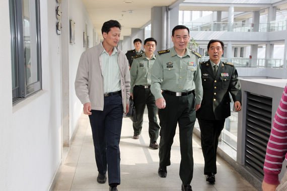 昨日上午,广东军区副参谋长黄德高一行五人来校检查指导女生征集工作。我校副校长戴炳源接待了黄德高一行。