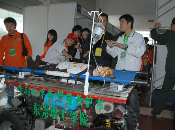 在校领导和教务处的大力支持下,机械工程学院精心组织学生参加了本次大赛的预赛和决赛。机械工程学院根据决赛要求重新优化了参赛队伍,针对预赛作品的不足进行全新制作,并申请了3个国家专利,其中有一个发明专利和两个实用新型专利。指导教师全心指导,参赛队员经过近两年的精心准备和在赛场上的全力拼搏,我校作品“全向自平衡的智能救护车”终获一等奖。参赛队员:黄祖云(机械工程学院)、李振源(电子工程学院)、蔡锐凯(机械工程学院)、吴祖彬(机械工程学院)、陈奕彬(机械工程学院),指导教师:许光辉、邓君。