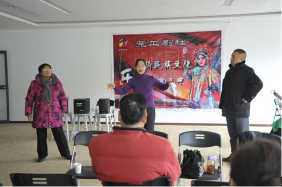 2012年1月7日莞工剧社在剧社活动室举办了2012迎新春演唱会,演唱会节目以京剧为主,还有粤剧、豫剧、黄梅戏、越剧、秦腔及花鼓戏等。荣幸的邀请到京剧名家原河南信阳京剧团团长金雅琴老师登台献艺,并对其余节目进行精彩点评。同时邀请了东莞梅兰京剧社乐队为节目伴奏。 演唱会上生旦净末竞相登台,精彩纷呈。台下谈笑风生,相互切磋技艺。通过演唱会大家提高了演唱水平,愉悦了心情。