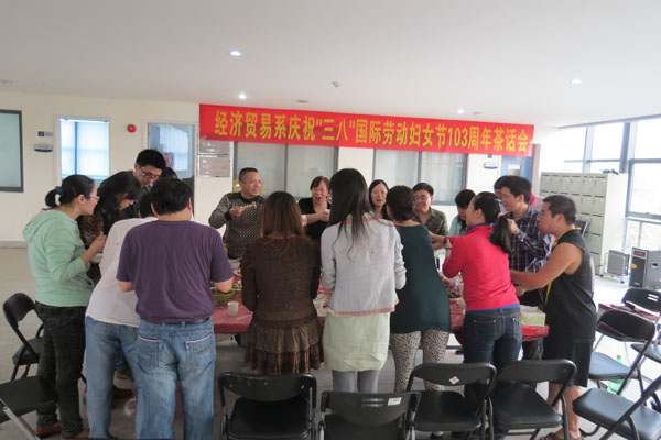 3月8日,经济贸易系在经管楼举行庆祝“三八”国际劳动妇女节103周年茶话会,全系女教工欢聚一堂,以学习烹饪、品鉴美食的特殊形式庆祝属于自己的节日。 活动中,经济贸易系的男教工们也热情地参与其中,各显身手,带来自制的美食与女教工们共同庆祝。活动现场热闹非凡,气氛活跃轻松,形式新颖独特,深受教工们的欢迎。大家纷纷表示,明年还要把这个节日办得更红火更欢乐。
