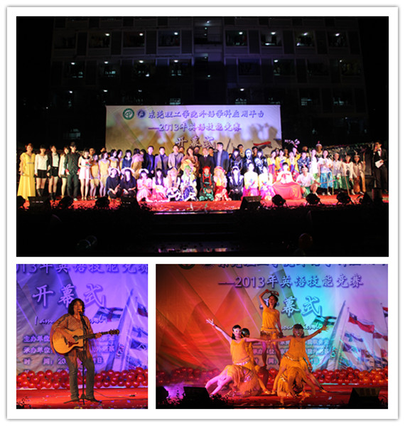 开幕式上,外语系得师生带来了具有浓郁异国风情的精彩表演,包括浓郁非洲风情的舞蹈《热情非洲》、朝鲜族舞蹈《大长今》及各种外国经典动漫人物的角色扮演。外教Rachael为观众演唱了外国乡村歌曲country Roads,歌手协会的林雪珍也友情献唱了歌曲TiK TOK。现场掌声阵阵,激情四射。