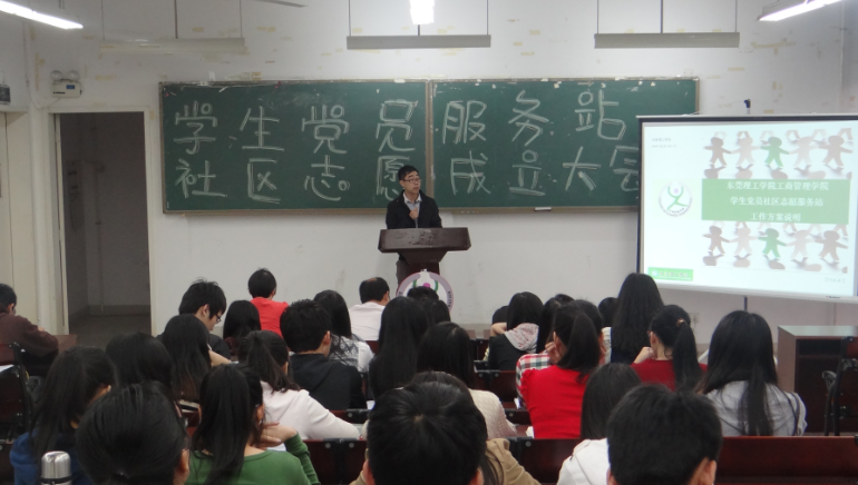 4月2日,工商管理学院召开会议,正式成立学生党员社区志愿服务站。