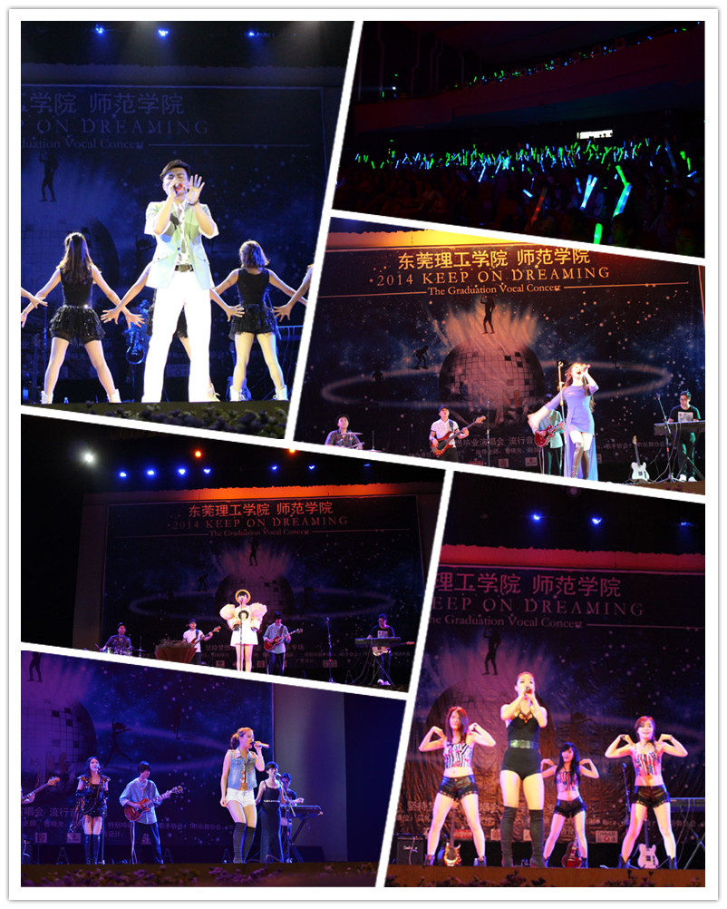 4月17日,师范学院在礼堂举办了一场别开生面的“坚持梦想毕业演唱会”。本场演唱会是由师范学院2010级音乐教育专业的邓梦甜以及2010级音乐表演专业的伍可歆、王奕雯、马丁榆、姜谱意5名学生自发组织筹办的流行音乐专场演唱会。演唱会吸引了全校1200多名音乐爱好者观看。