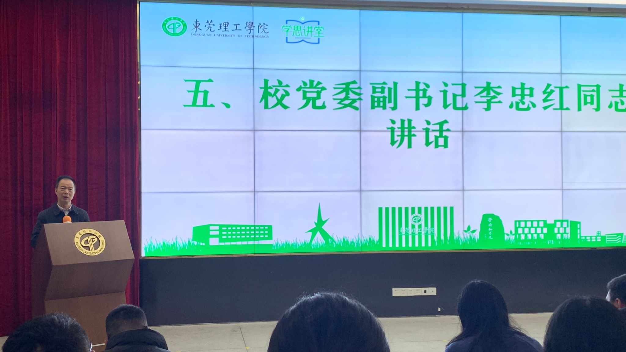 3月1日,2024年学生工作会议暨第四十三期学思讲堂在松山湖校区学生活动中心举行。学校党委副书记李忠红,教务部、教学质量监测与评估中心、现代教育技术中心主要负责人,学生工作部、就业创业与校友工作部、团委、学生社区知行学院(通识教育学院)全体人员,各二级学院学生工作负责人、全体辅导员,社区辅导员(驻校社工)等参加会议。