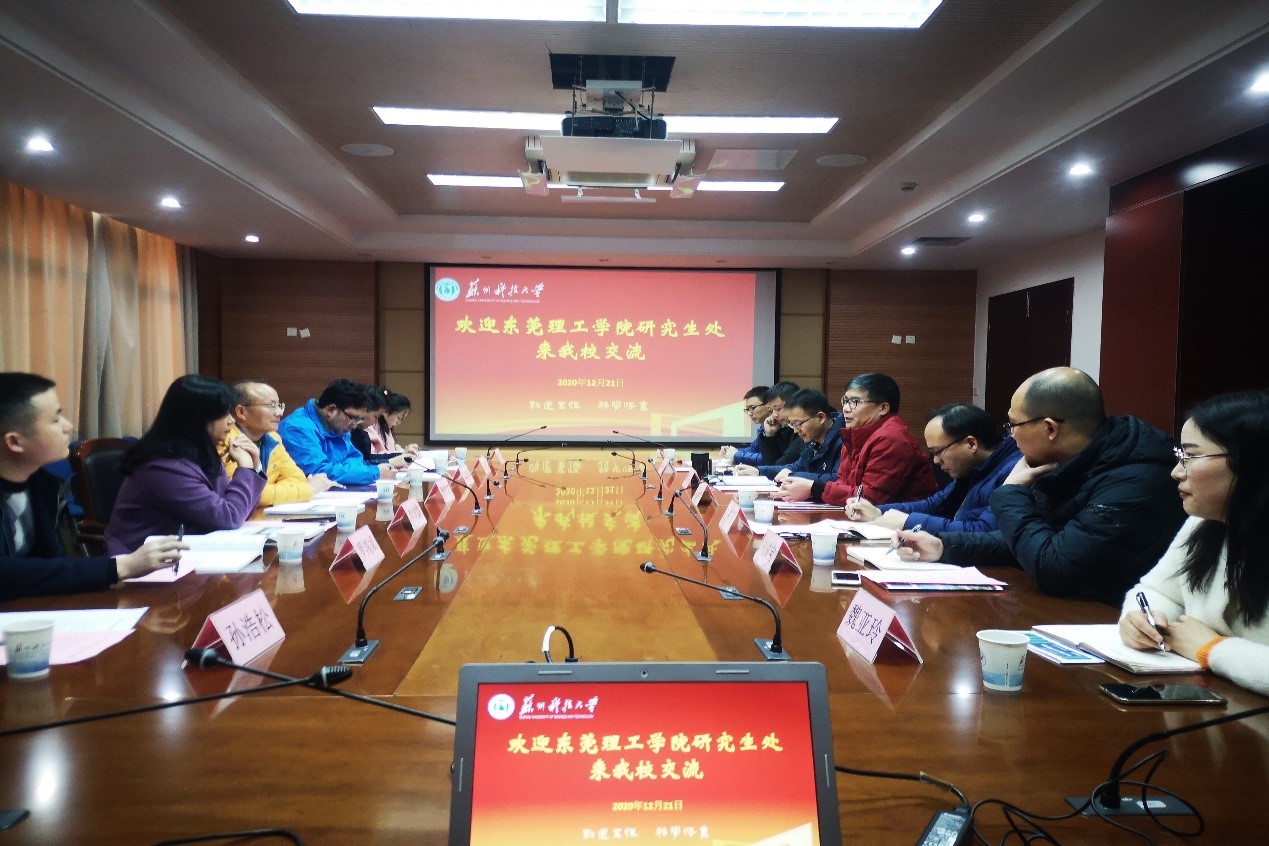为加快我校新型高水平理工科大学示范校建设步伐,积极推动学校研究生教育工作,加快培养适应党和国家事业发展需要的高层次人才,扎实推进新时代研究生教育内涵式高质量发展,根据学校“深调研”工作要求,学校组织研究生培养单位相关负责人及工作人员等一行8人,于12月21日-23日分别赴苏州科技大学和苏州大学交流学习。