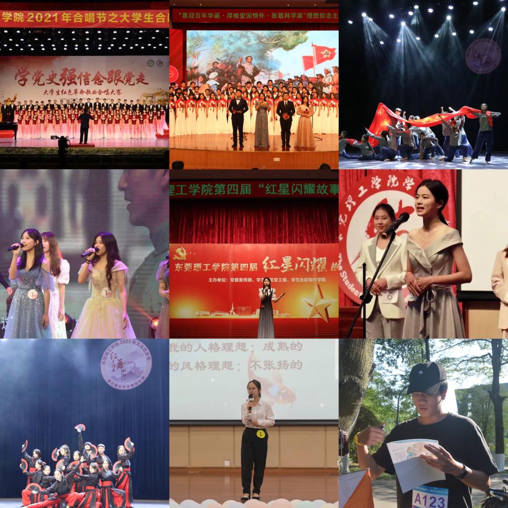 开展了“学党史 强信念 跟党走”大学生红色革命歌曲合唱大赛等2个A类项目、“红色传承 舞映初心”第三届大学生舞蹈比赛、“建党百年 乐启新篇”校园十大歌手比赛、“红星闪耀故事汇”等8个B类项目、“我的青春我来秀”军营才艺秀、“喜迎百年华诞 厚植爱国情怀 致敬科学家”理想信念主题教育展示活动等2个C类项目,吸引万余人次参与,用丰富多样的艺术形式开展党史学习教育,带领青年学子在艺术中回顾党的百年历史,从党的百年伟大奋斗历程中汲取继续前进的智慧和力量,献礼百年华诞。